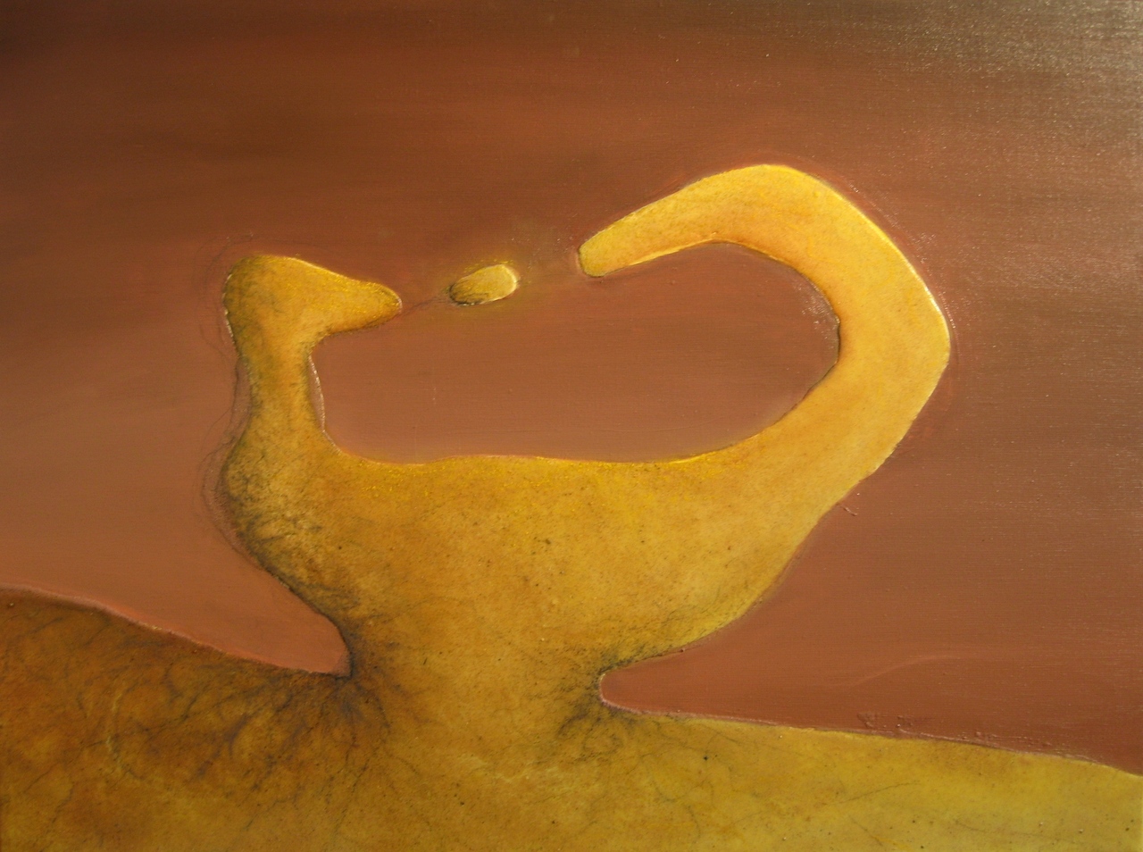 In de schilderijen van Heleen Makkinga is haar fascinatie te zien voor de wereld van de microscoop en de telescoop.Deze geheimzinnige en verborgen wereld zoekt zij op in haar werk.
