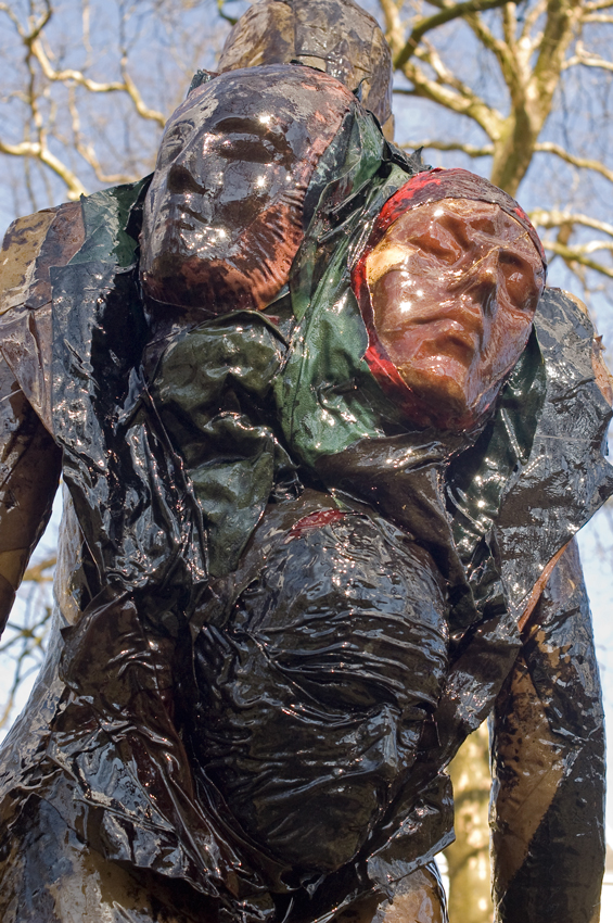 Silhouette verbeeld een vrouw met de 3 levensfases in haar. De maagd, de moeder en de wijze oude vrouw. Deze drie fases zijn als gezichten terug te vinden in de opening in haar nek en rug. Hier ziet de toeschouwer haar innerlijk, het innerlijk dat letterlijk naar buiten komt. Het werk is gemaakt van leer.