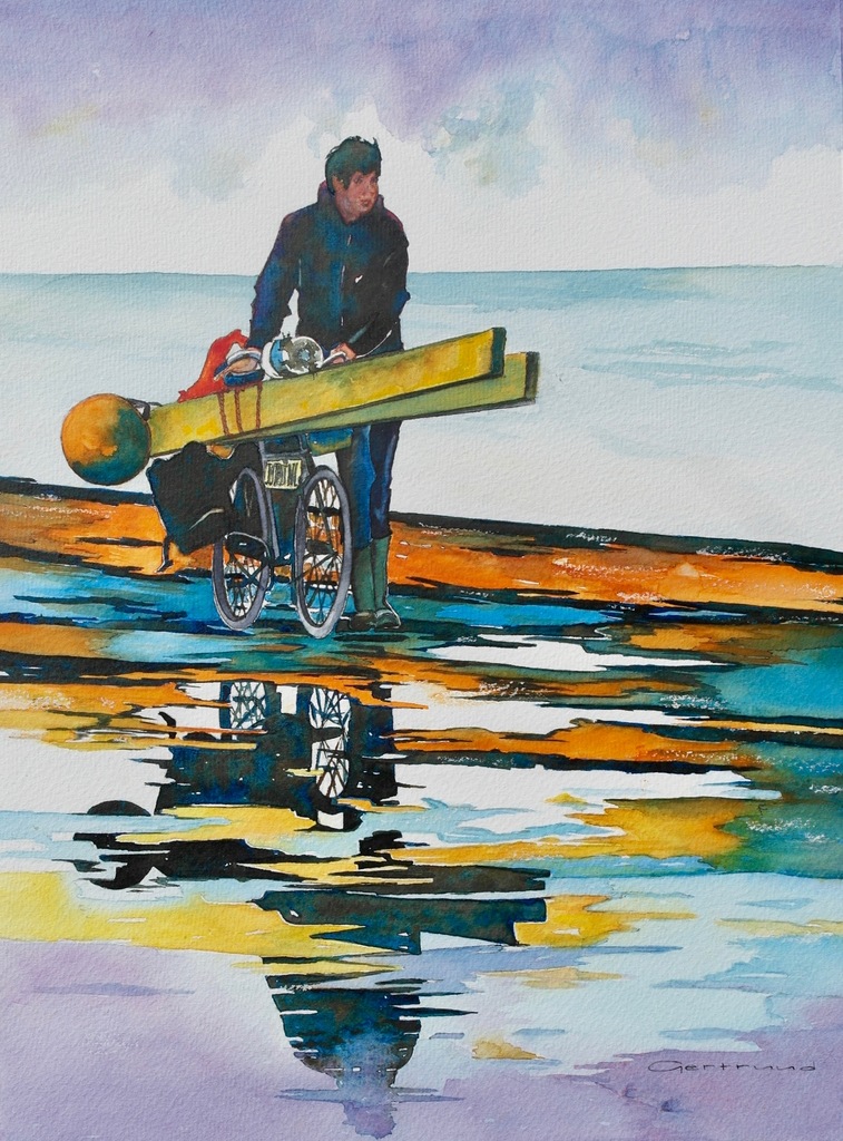 Zee Strand Oranje Zwart Blauw Fiets Strandjutter