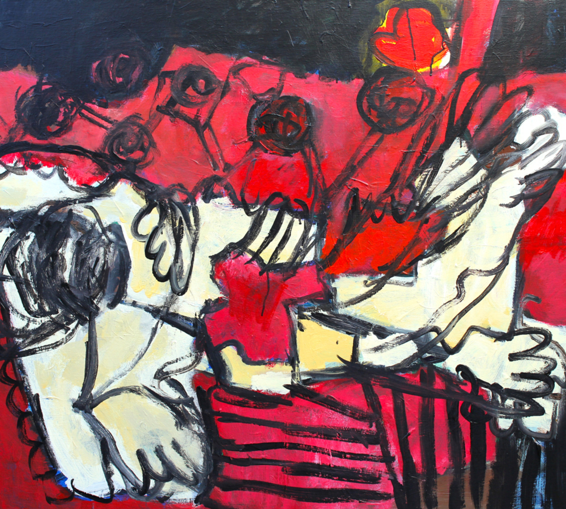 Mijn schilderijen komen tot stand door uit te gaan van een bepaald idee, of een bepaald beeld dat ik voor ogen heb. Soms ga ik alleen uit van bepaalde vormen en kleuren.