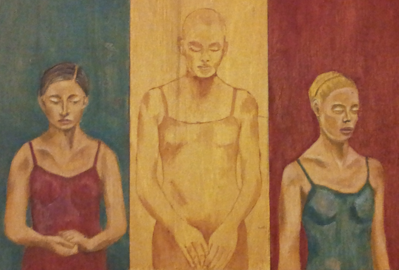 Drie in punische was geschilderde figuren op drie paneeltjes : € 30 per stuk. Samen voor € 60