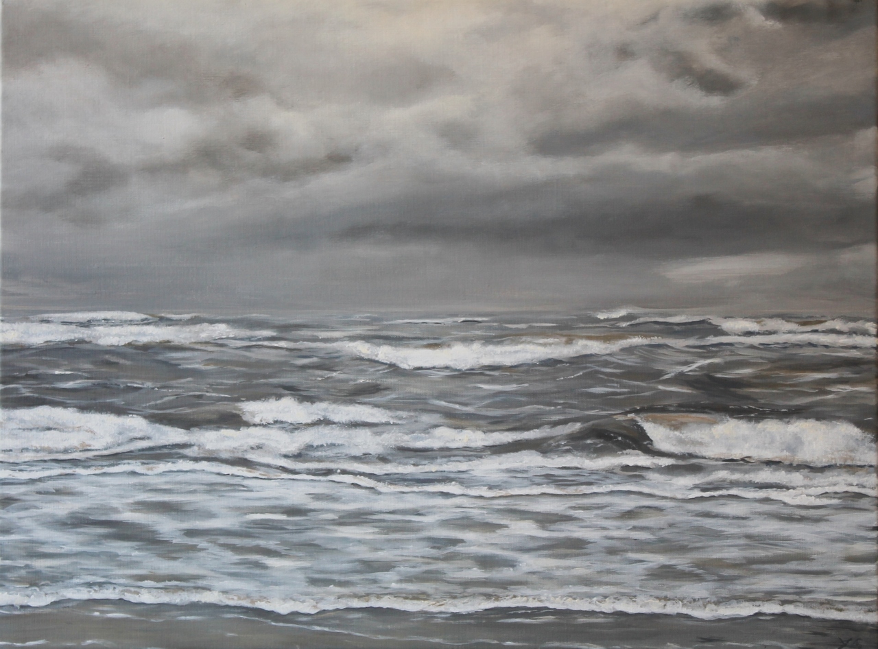Zee Strand Grijs Blauw Natuur Golf Lucht Wolk Zand Zeegezicht Golven Dreigend Schuimkoppen