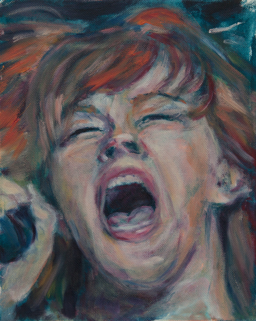 Schilderij Oranje Expressief Portret Olieverf Mens Artiest Zangeres Uitbundig
