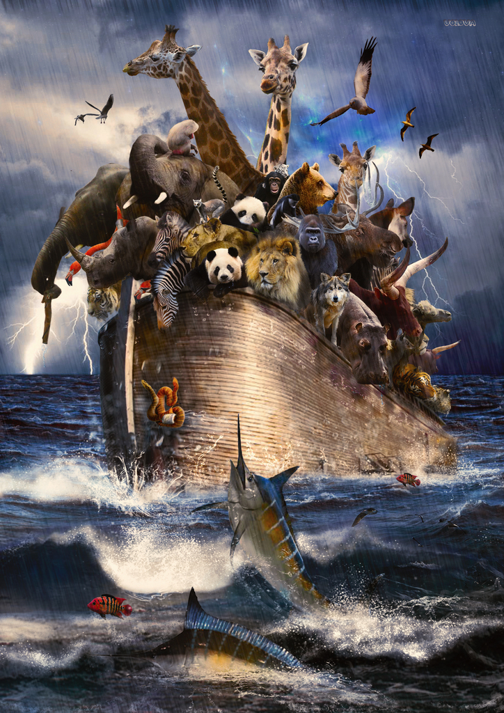 Blauw Dieren Digitaal Surreëel Storm Bijbelverhaal Animaals