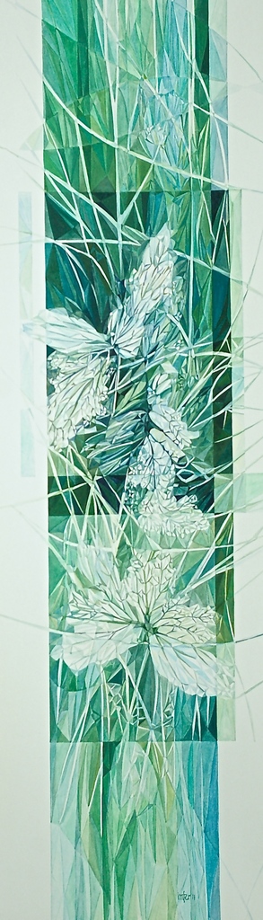 De merkwaardige stijl in een groot deel van haar werken is de sublieme opbouw met allemaal kleine driehoekjes. Niet alleen het geduld maar vooral het eindresultaat is als het ware een visitekaartje voor haar....