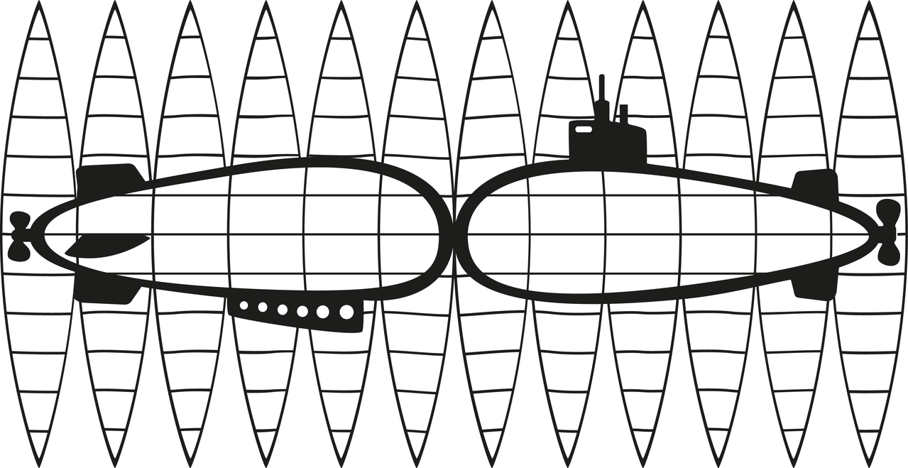 Een serie tekeningen met variaties op het thema zeppelin en onderzeeer.