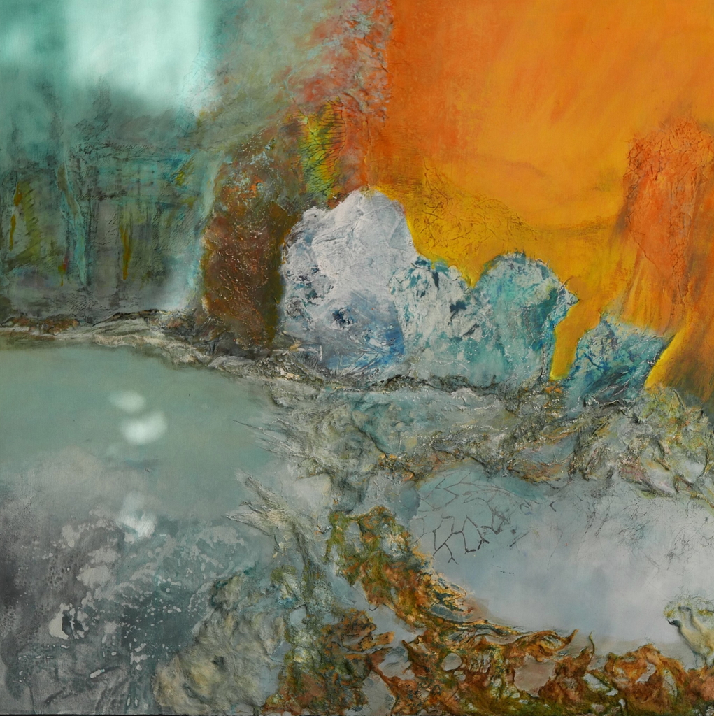 Het genoegen op te gaan in kleuren en materialen en niet te weten wat er zich aandient, dat ligt ten grondslag aan mijn werk. Vaak is er een verwijzing naar water en landschap. Dit reizen brengt me uit mijn hoofd en in mijn hart.