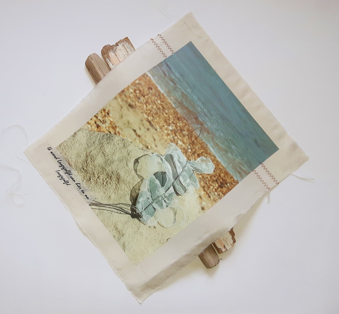 Ik vang in mijn werk momenten van rust en harmonie die ik vind aan de kustlijn. Hiervoor gebruik ik blauwgrijze, ziltgroene en natureltinten en eigen teksten die ritmisch terugkomen, over de golfslag en de oneindigheid van de zee. De non-figuratieve objecten zijn 2-dimensionaal met een sterk reliëf, in gemengde technieken als: schilderen, snijden, branden, naaien, smelten. De materialen bestaan o.a. uit acryl- en aquarelverf, schelpen, drijfhout, roest, zand, voile, en bedrukt papier.