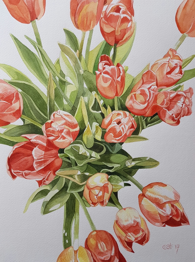 Boeket Tulpen Bloemen Aquarel Rood Groen Realistisch