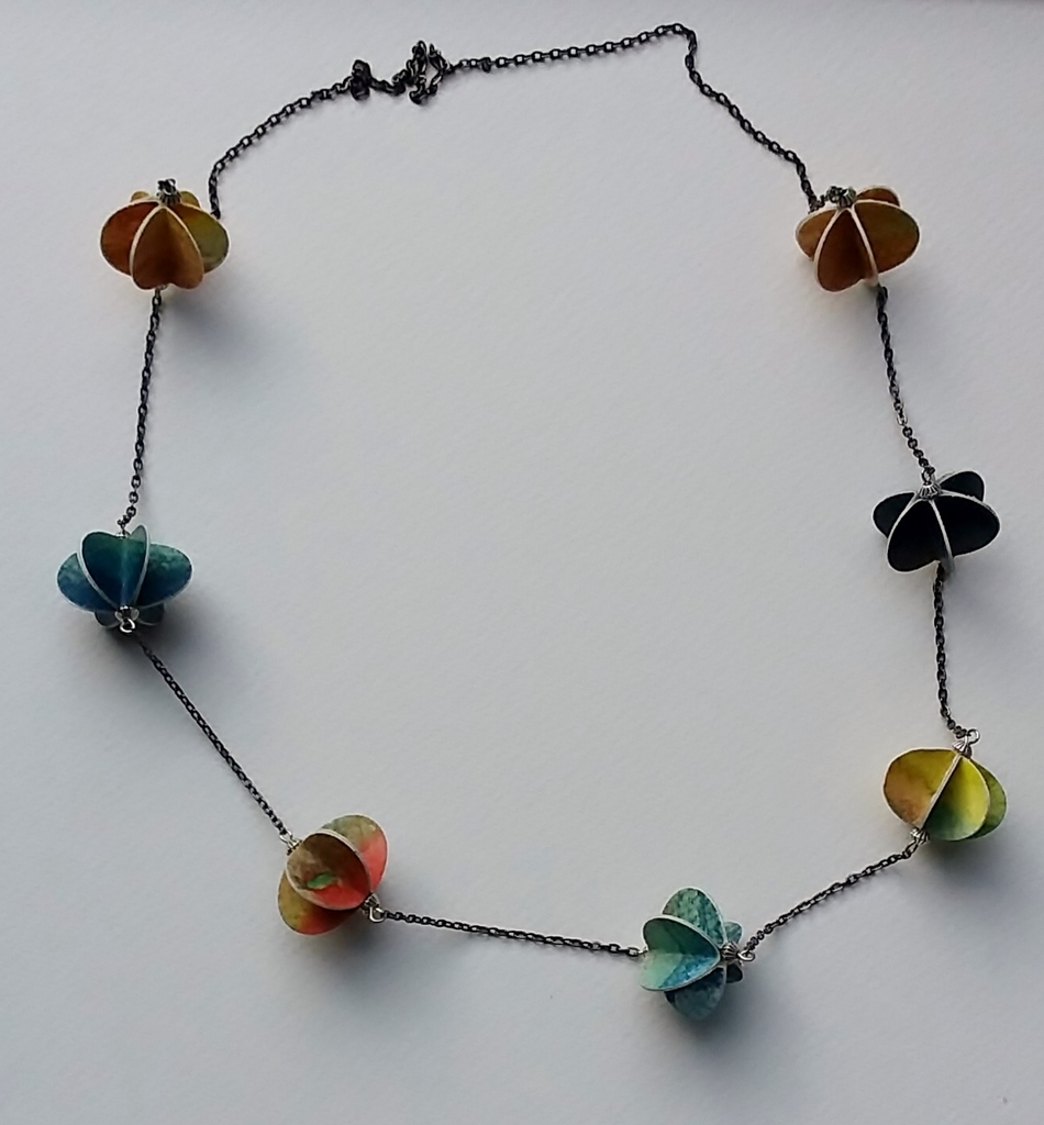 Willy Keuvelaar (1949) was 30 jaar activiteitenbegeleider en daarom gewend iets te creëren met gebruikmaking van materiaal dat voor handen is. Na de de creatieve opleiding voor activiteitenbegeleider volgde ze ieder jaar een andere cursus op creatief gebied. Vaak weer uitkomend bij etsen en boetseren. Zij werkt geregeld in de grafische werkplaats van de SKVR . Tijdens het etsen blijft er vaak een ets liggen die niet helemaal aan de eisen voldoet. Zonde van het mooie papier en de grafische afbeelding. Zo ontstond het idee om er sieraden van te maken. Door een speciale verlijming en een coating zijn de sieraden stevig als hout en watervast. Haar PET fles sieraden geven de illusie dat er iets gedaan kan worden aan de plastic soep. PET flessen worden in de fabriek met warme lucht opgeblazen.