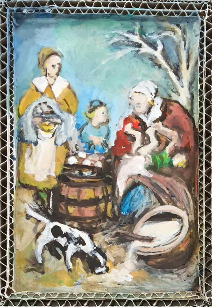vrij naar Gerard Dou "De kwakzalver" 1652