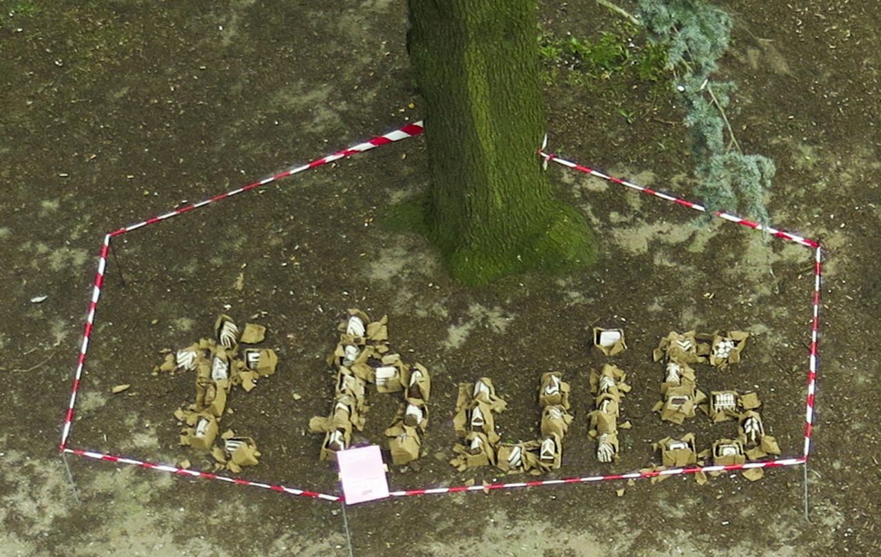 Ik heb deze installatie samen met inburgerende statushouders gemaakt. Zij hebben o.a. veel van de gebakken huisjes gedecoreerd tijdens de pauze van hun lessen Nederlands. De gebakken huisjes symboliseren hun nieuwe "thuis, dat te voorschijn komt van onder hun vernietigde oude thuis van ongebakken klei. In de kleibrokken kunnen zo nieuwe wortels groeien.