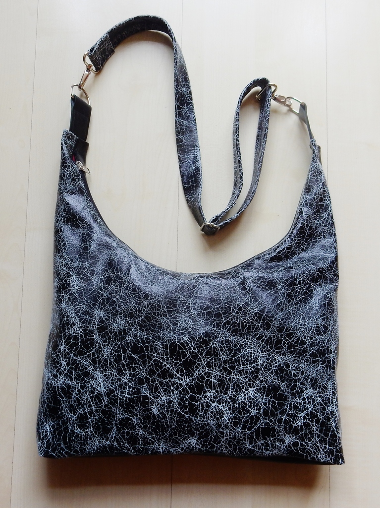 Leren tas bestaande uit 2 soorten leer. Ene kant craquele, andere kant effen zwart leer.
