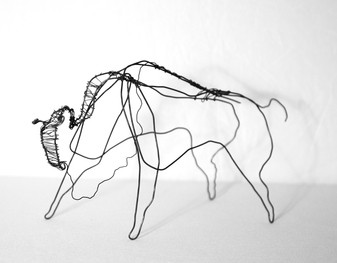 Schets Dier Stier Tekening Metaal Draad Bull Bizon Wire Wisent Zwart-wit