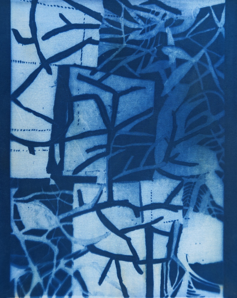 Blauw Bladeren Planten Abstraherend Cyanotypie Op Doek