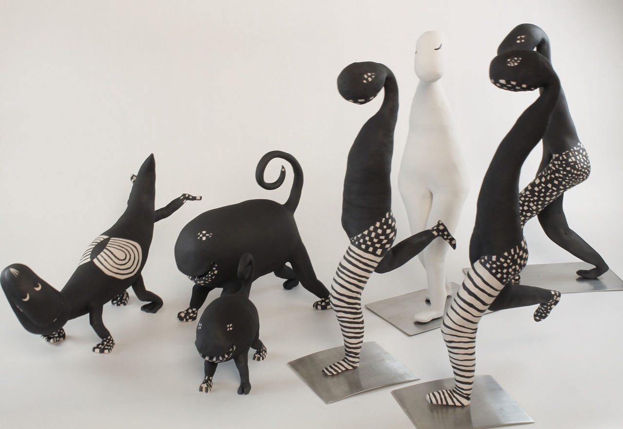 Wit Figuratief Zwart Beeld Dier Mens Grappig Keramiek Humor Verzameling