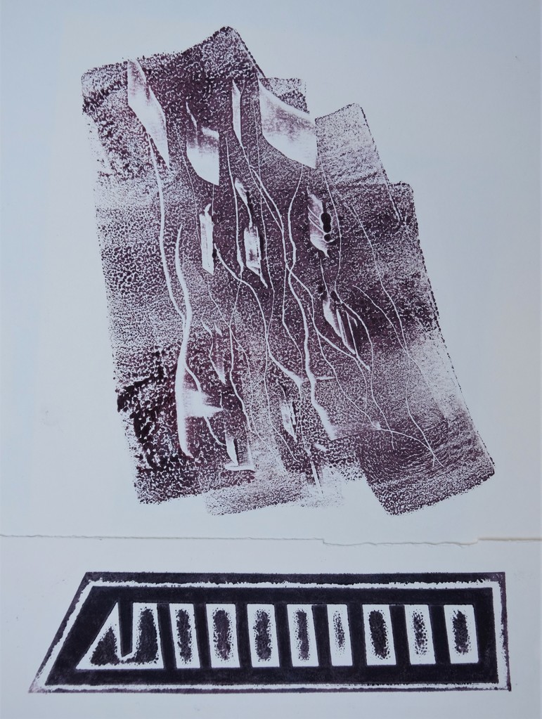"een standbeeld / hoort niet te zweven" (monoprint, onderste deel uit sjabloon)