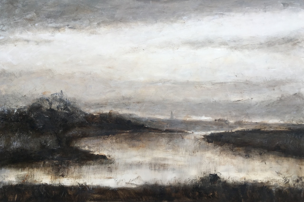 Landschap Olieverf Wijds Verstilling Rivier Schemering Doesburg