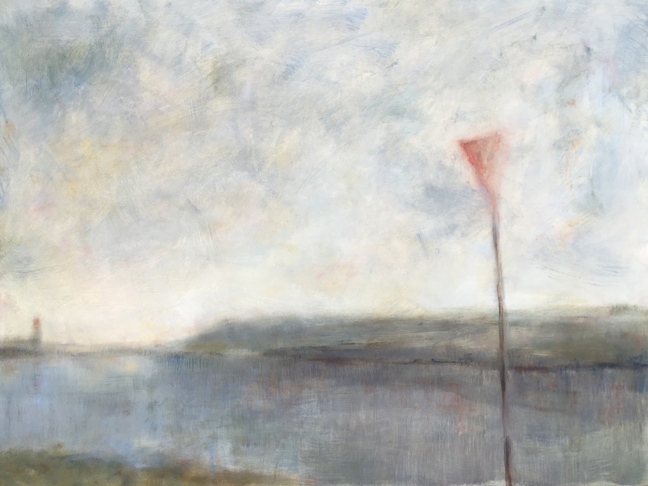 Grijs Landschap Tweeluik Olieverf Rijn Rivier Sereen Weids