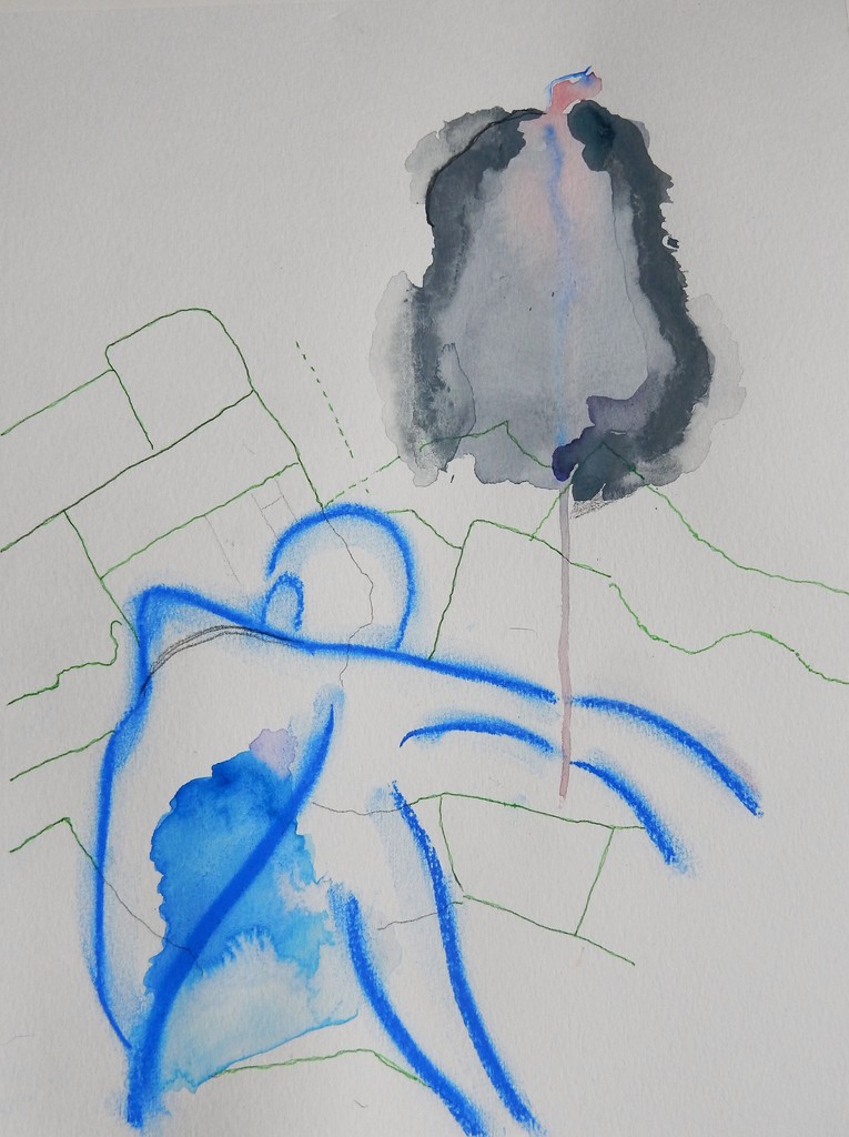 Aquarelverf, viltstift en softpastel op papier.