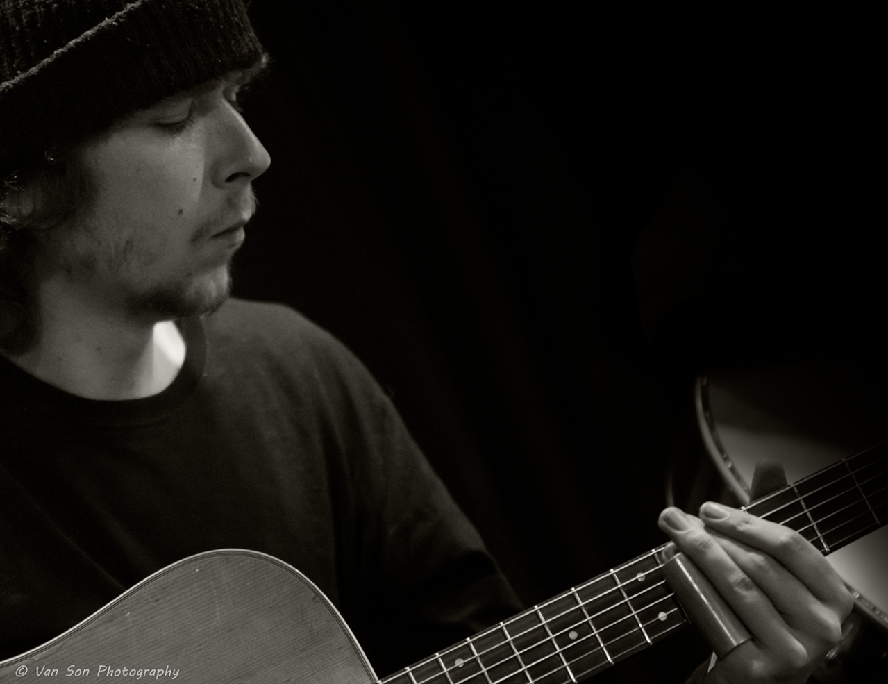 Muzikant Gitarist Man Muziek Optreden Concert Zwart Wit