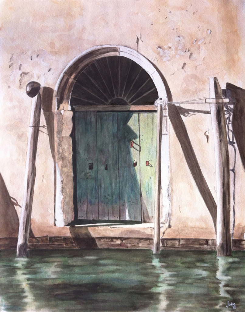 Aquarel Oud Realisme Deur Venetië Groen Water