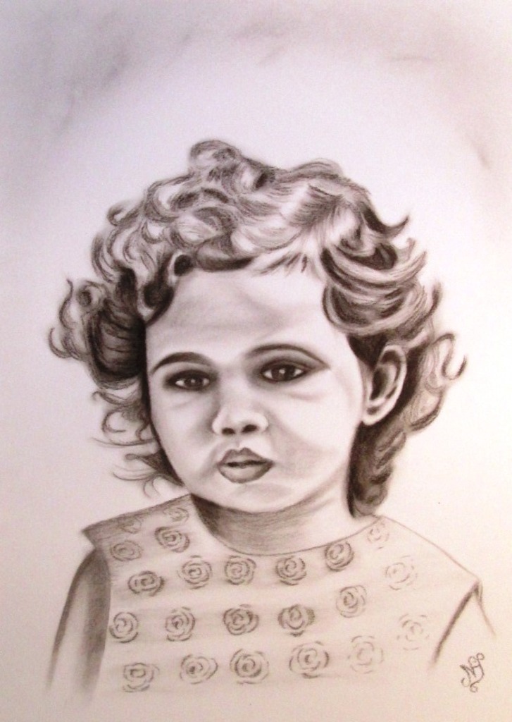 Houtskoolportret van een gevoelig kind.