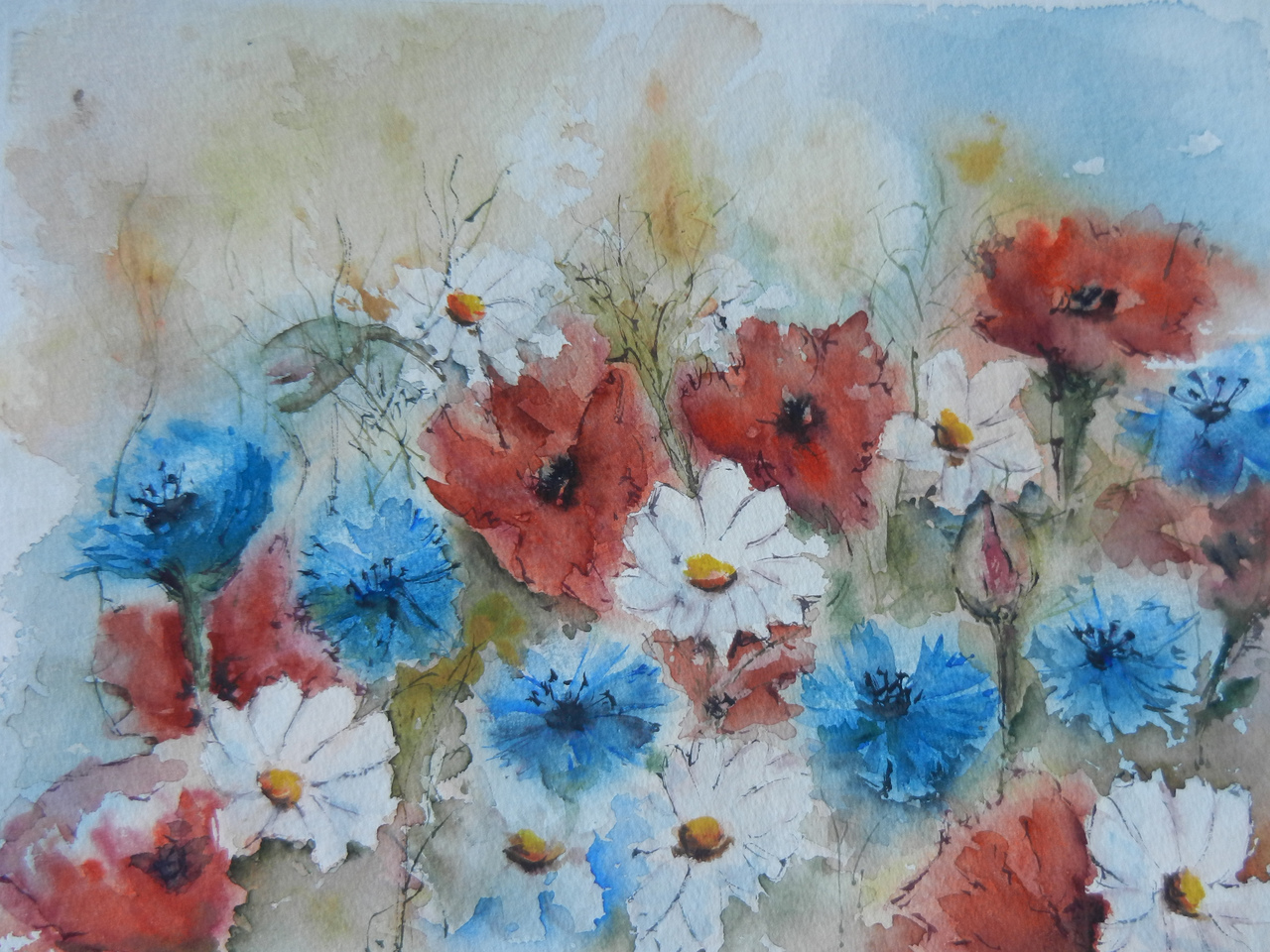 Klaproos, margriet en korenbloem. Lange tijd geweerd in onze velden. Nu terug in opmars. Prachtig!