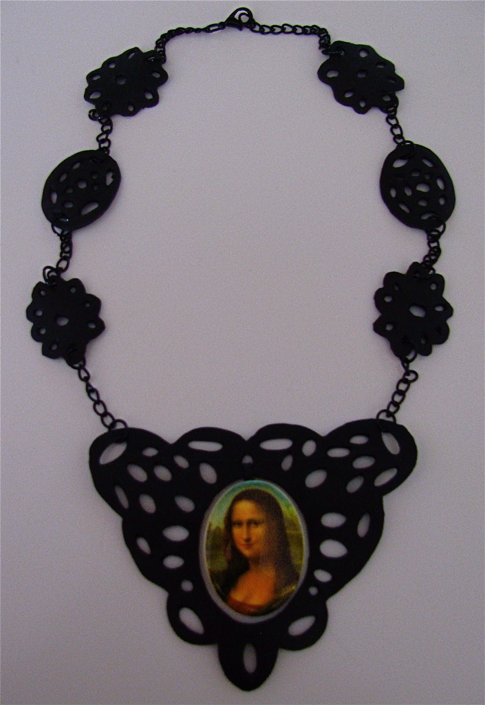 Recycled Necklace Bike Tire Upcycled Mona Lisa Black Lacey Repurposed Gothic Reused Rubber Tango