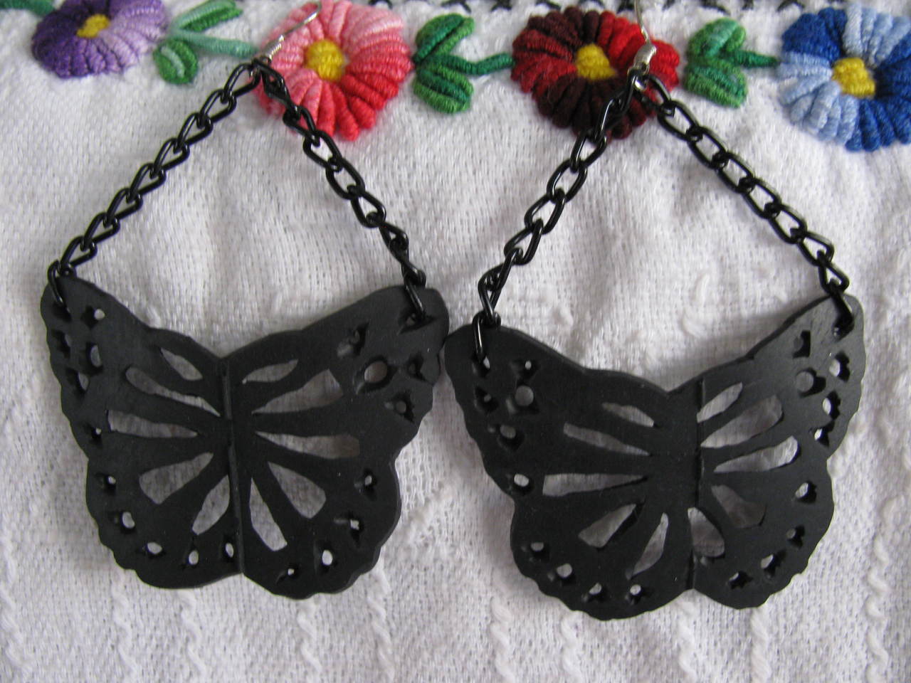 Recycled Earrings Upcycled Bike Tire Reused Inner Tube Butterfly Rubber Butterlies Lacey Black Lace Eco Trash Fashion Tubes