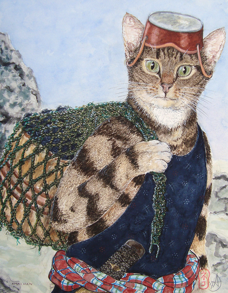 Arie de Jong (Alkmaar, 1961) verbindt in haar werk haar passie voor katten met haar interesse voor de Japanse cultuur en (krijgs)geschiedenis.