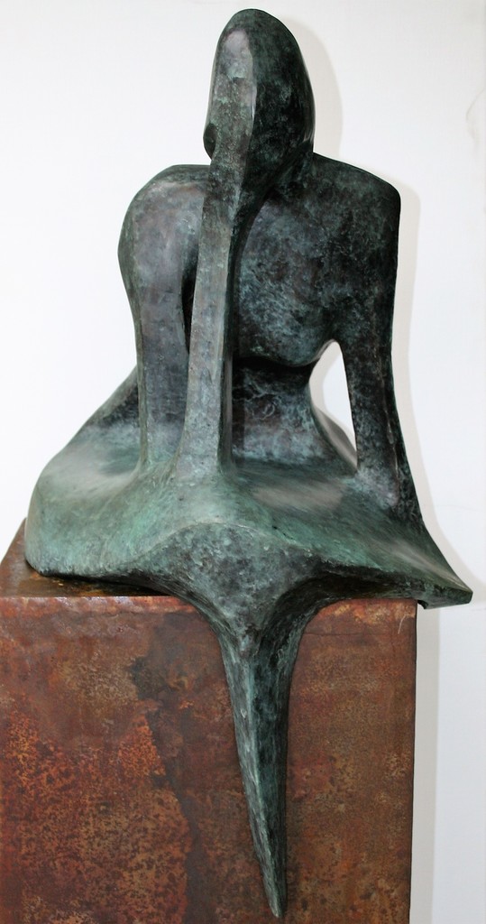 Het bronzen beeld overdenk is gemaakt volgens de verloren was methode.