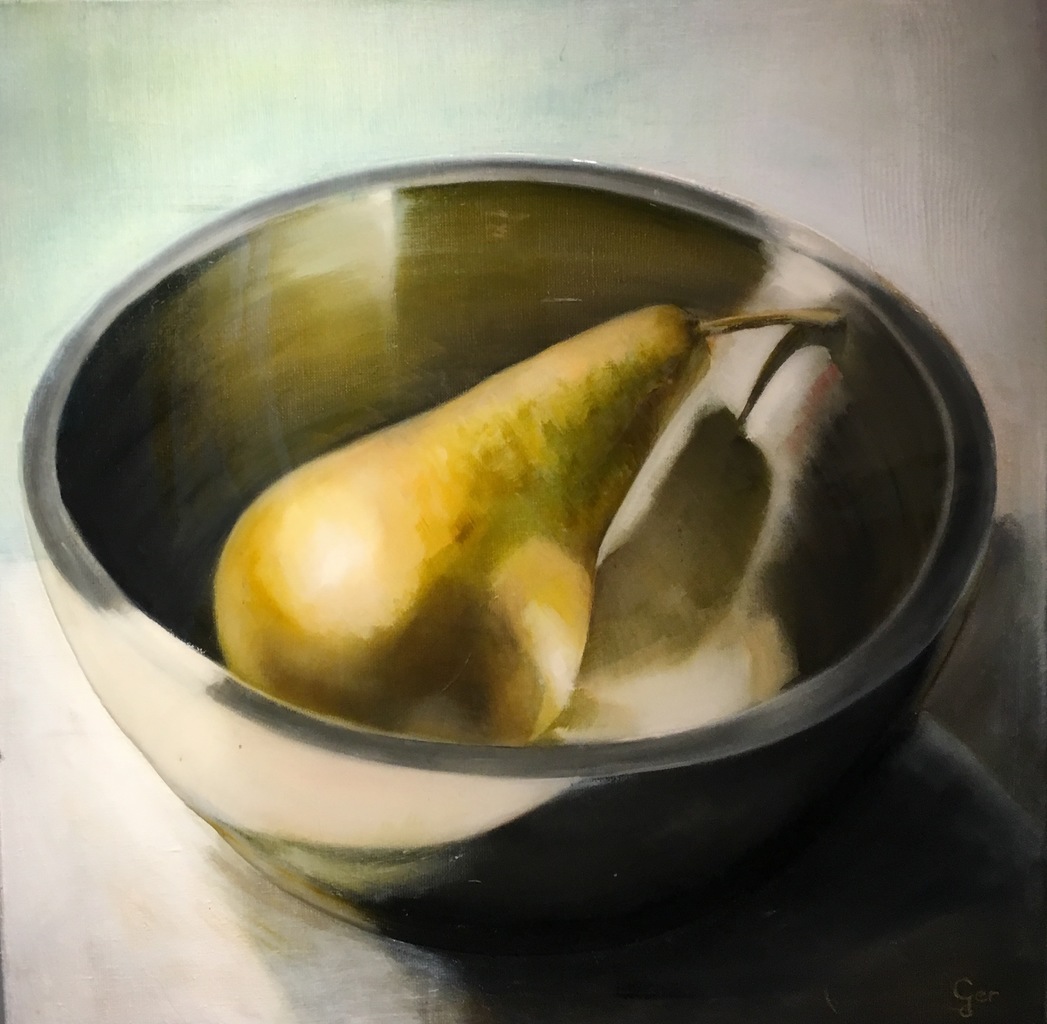 Conference. Met olieverf geschilderde peer in schaal.