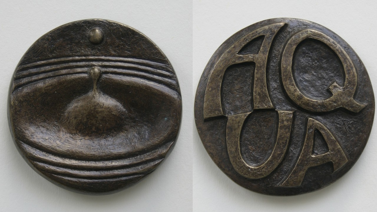 Uit de serie “de 4 elementen”: Water, met op de voorzijde een druppel die kringen veroorzaakt bij het vallen; op de keerzijde het Latijnse woord AQUA ( 60 mm).