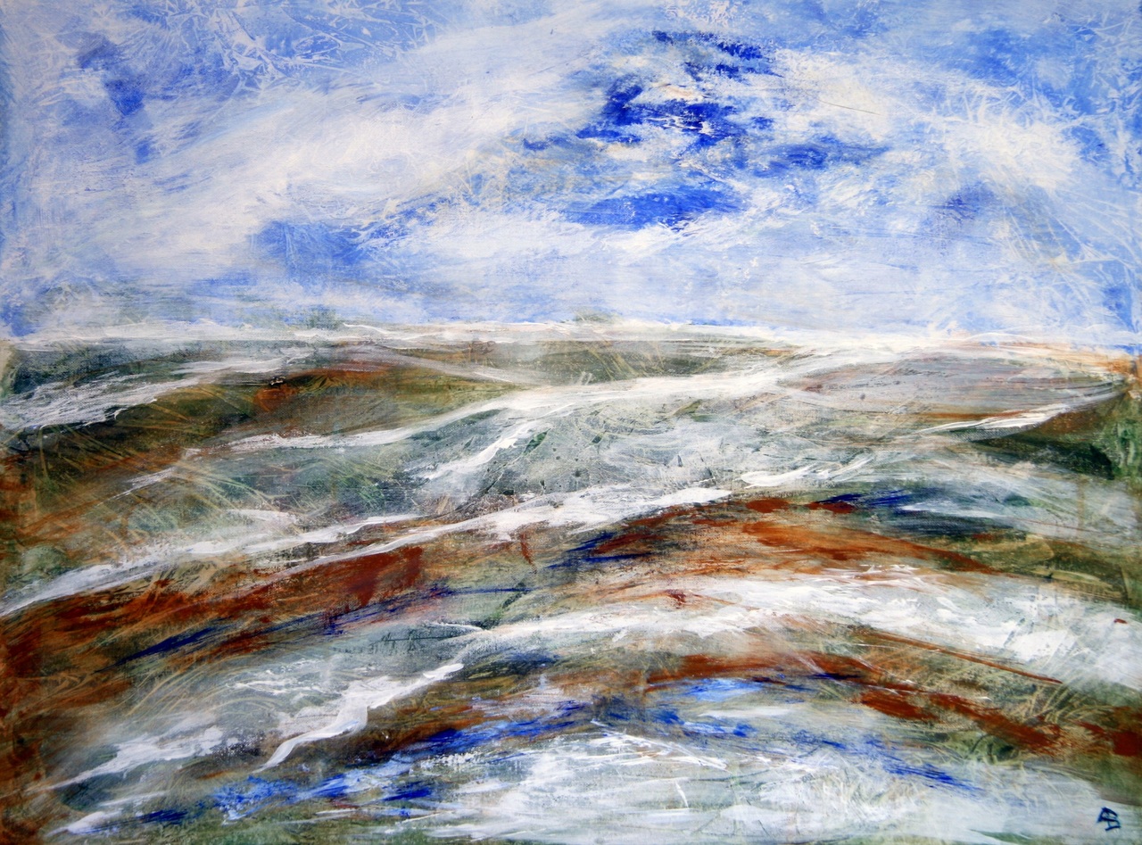Ik schilder met aquarel, acryl en olieverf. Mijn inspiratie vind ik in zon, wind en water, de lijnen in een landschap.