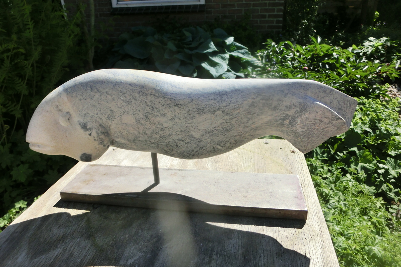 Ik werk intuïtief. Maak beelden van speksteen, albast en/of serpentijn. Veel enigszins geabstraheerde diervormen