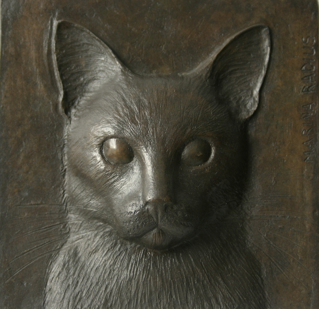 Brons Kat Relief Poes Cat Reliëf Bronze Kattenkop Poezenkop Plaquette