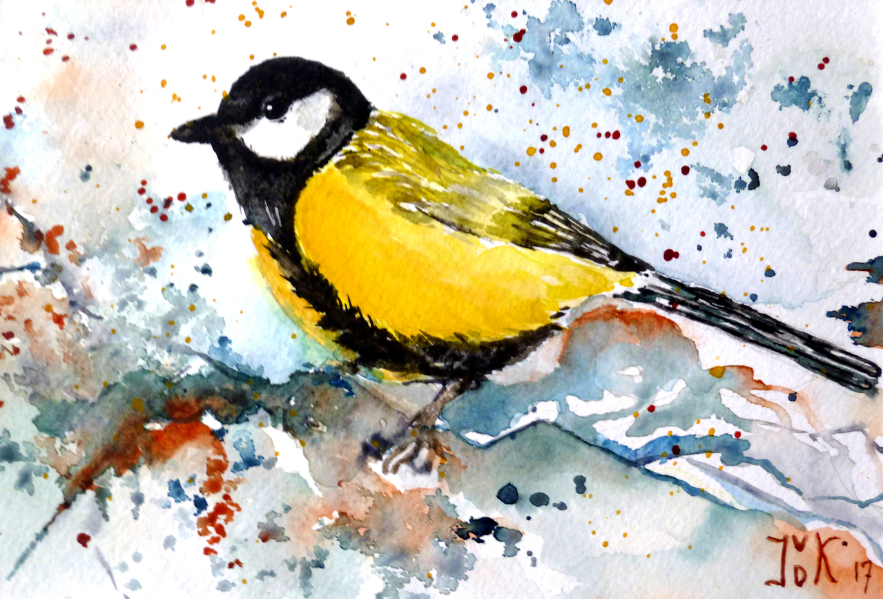 Aquarel Inclusief Lijst En Koolmees Passe-partout