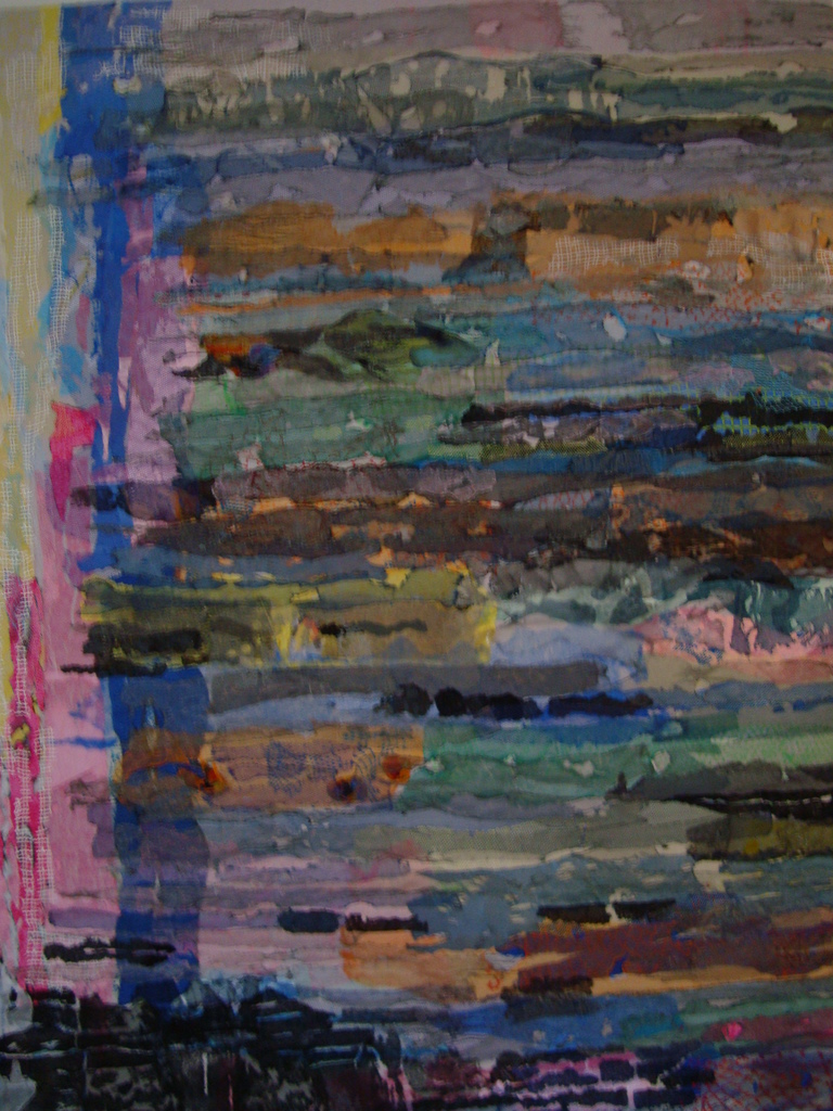 Horizontale en vertikale lijnen en door de vele lagen over elkaar, zijn het net verfstreken.