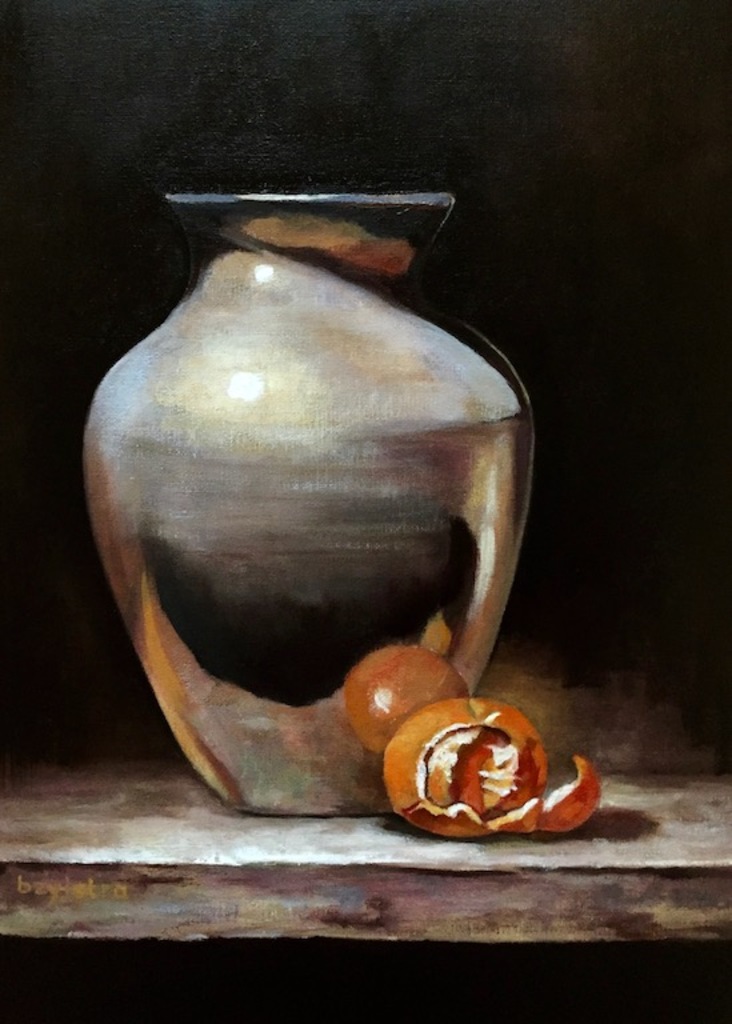 Stilleven met vaas en mandarijn