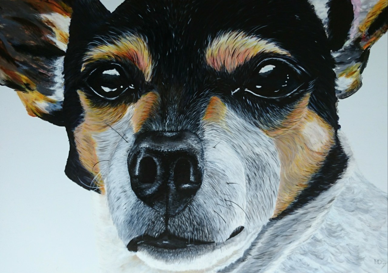Jack Russel Angel in acryl op Dibond paneel.