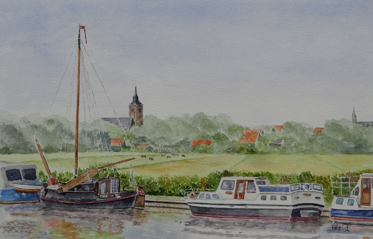 Mijn naam is Aleid Hagen (1954). Ik woon in Oterleek en schilder veel plekjes uit de Schermer en omgeving. Ik probeer de sfeer en wolkenluchten van het landschap te vangen in mijn aquarellen. Tijdens de vele fietstochten word ik nog steeds getroffen door ons mooie polderlandschap met de molens en de schilderachtige dorpjes. Maar ook de vogels, de koeien en andere dieren treffen me. Ik ben autodidact en heb het schilderen in aquarel mijzelf aangeleerd door veel te schilderen. Daarnaast heb ik boeken bestudeerd over onderwerpen zoals perspectief, compositie, kleurgebruik en de verschillende aquareltechnieken. Ook heb ik workshops van bekende Engelse aquarel schilders gevolgd. Ik wil mijzelf blijven verbeteren en zoek naar nieuwe onderwerpen.