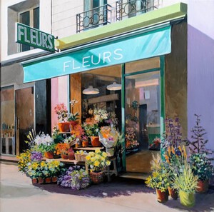 Ik schilder de stad: straten, gevels, etalages, interieurs.