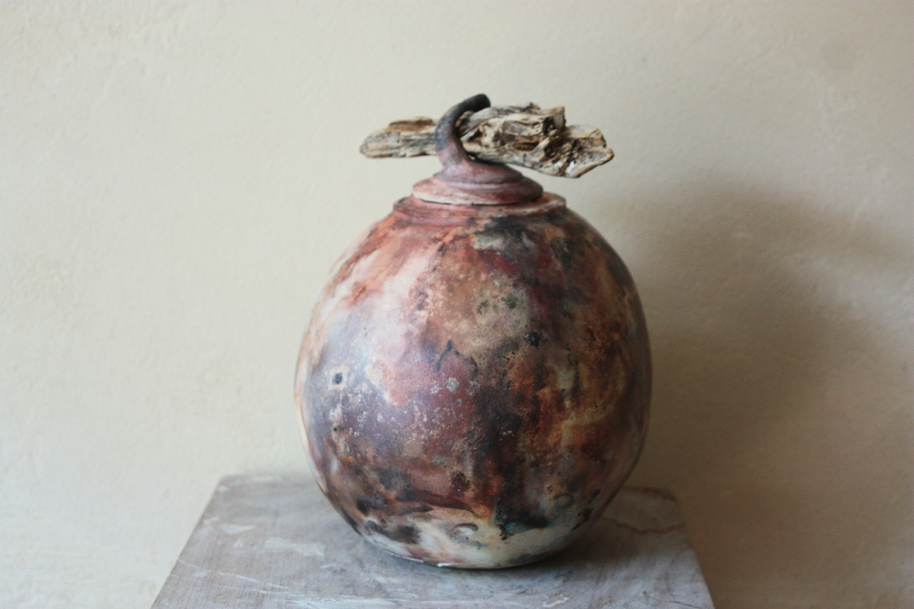 Na de eerste stook is de pot bewerkt met organisch materiaal en omwikkeld met aluminiumfolie. Het geheel wordt in een ton met hout gelegd en aangestoken. Als alles goed brand wordt het vuur afgesloten met een deksel . Het uiteindelijke resultaat laat het vlammenspel en inwerking van het organisch materiaal zien.