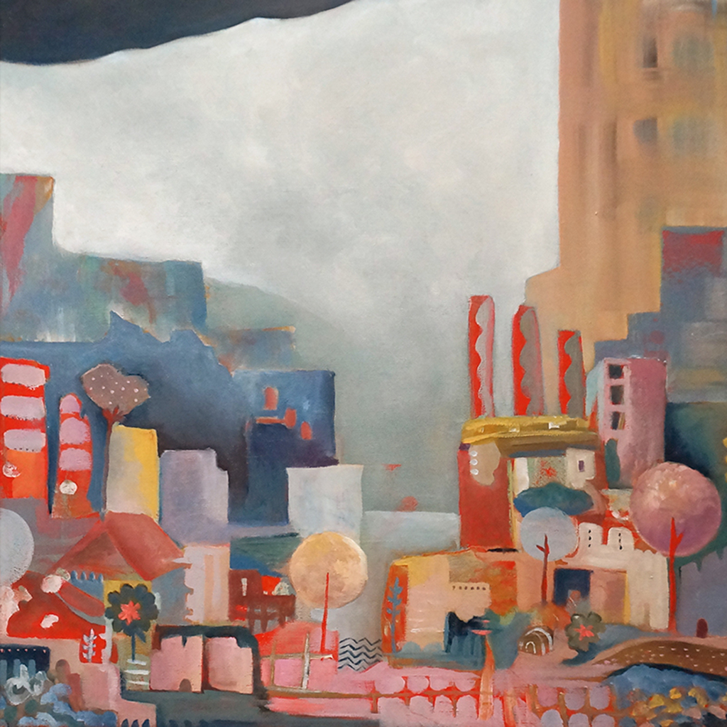 Een abstracte stad in olieverf vol kleurrijke gebouwen, bomen en straatjes. Ik hanteer bij dit kunstwerk geen vaste prijs. Je mag zelf aangeven wat je voor dit werk zou willen geven (vanaf €200,00)