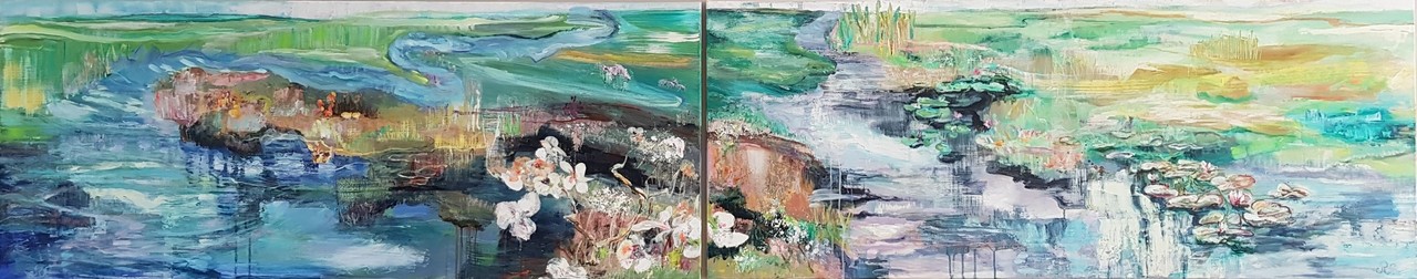 Tweeluik in opdracht, elk 150cm breed en 60 cm hoog.