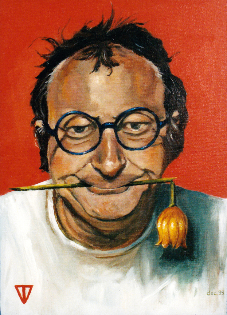 Teleurstelling voor Youp van 't Hek door Golden Tulip arrangement. Dit werk is verkocht bij Nijhof in Baarn voor "goed doel" maar aan wie?? Wie het weet mag het zeggen.