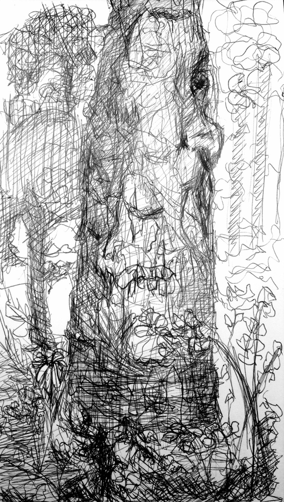 Wit Zwart Gezicht Figuur Natuur Bos Boom Vriend Lijnen Krabbels