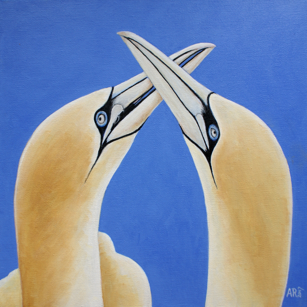 Schilderij Wit Blauw Wildlife Dieren Painting Birds Vogels Animals Vogelschilderij Jan-van-gent Gannets