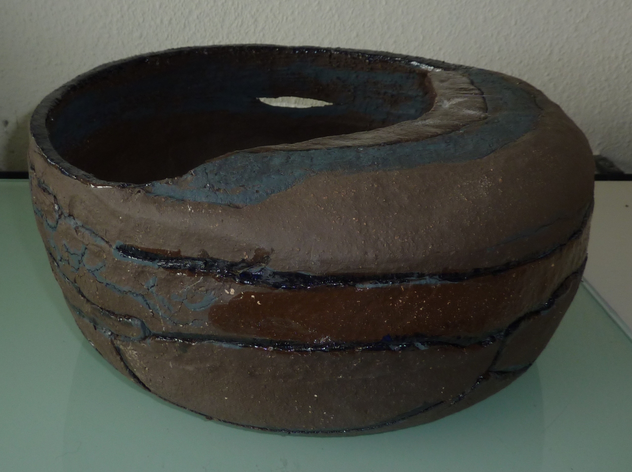 #247 Scala ogetto 2 (grote bruine schaalobject) doorsnede 37cm. Gemaakt van bruine grove chamotte klei.